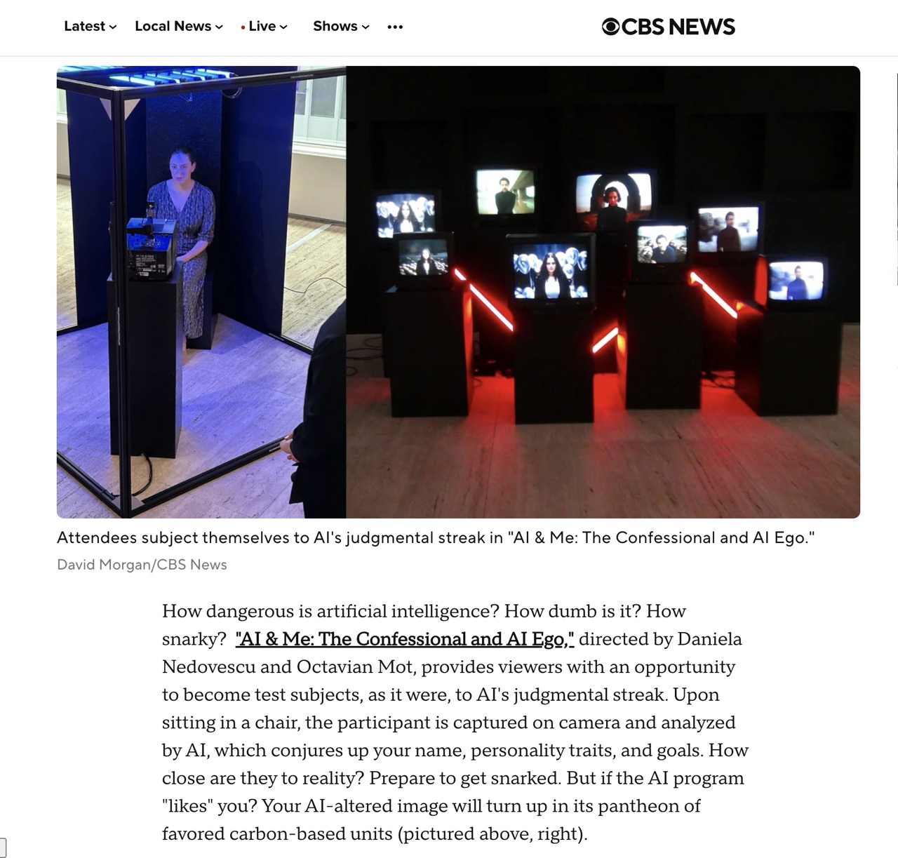 CBS News visited AI & Me: The Confessional and AI Ego during In Search of Us, the immersive exhibition at the Tribeca Festival in New York. Read the article here.