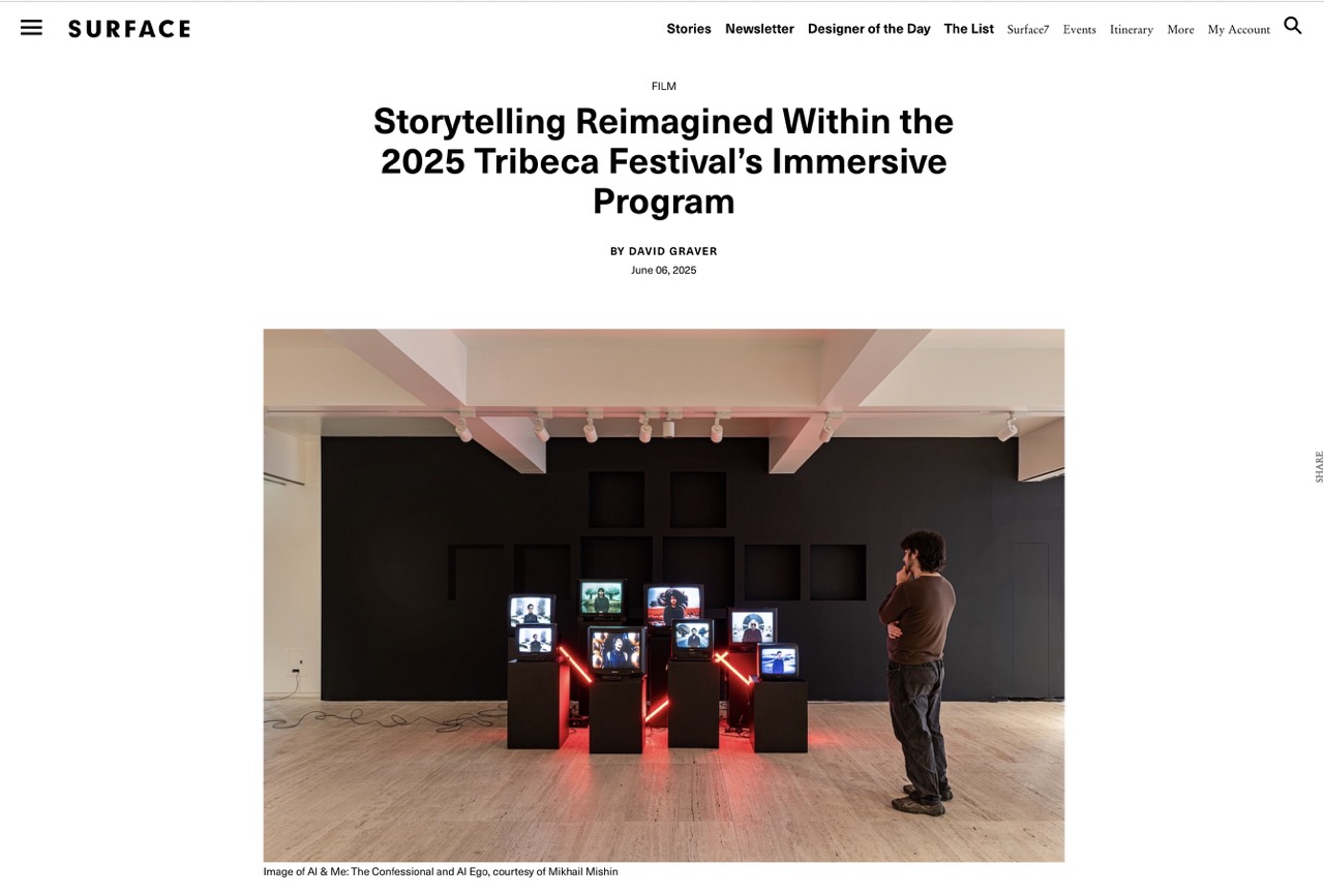 We’re happy to share the Surface Magazine feature, which opens with an installation image of AI Ego and includes our quote. The piece was written by Surface’s Editor-in-Chief, David Graver. Read the full article here.