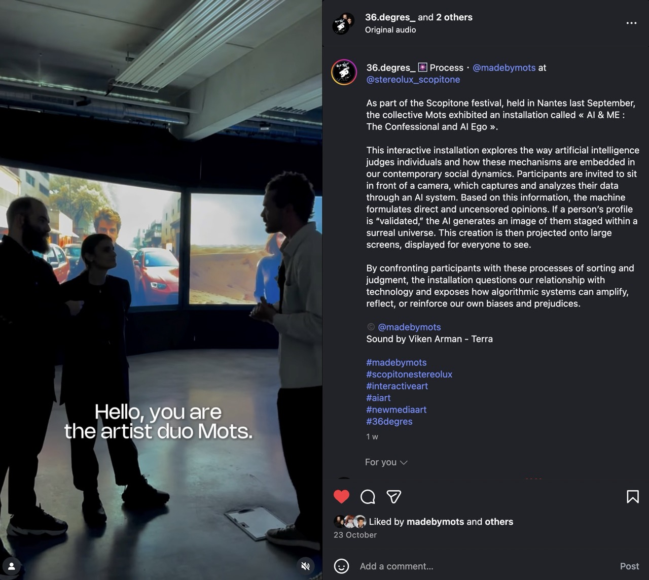 36 degrees stopped by during the Scopitone Festival in Nantes, where we were showing The Confessional and AI Ego. We loved walking them through how it all works! Here's the instagram reel they made.